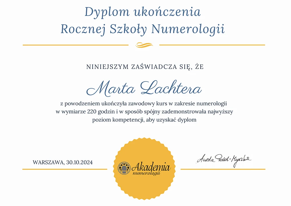 Mam w sobie ogrom empatii, które pozwala mi znaleźć nić porozumienia z każdą osobą, która do mnie się zwraca. Nie ma znaczenia wiek, ani status społeczny, a wiedza zawarta w liczbach pozwala nakreślić nam osobowość każdego człowieka, pomaga zrozumieć wyzwania jakie stoją przed daną osobą, jak również udostępnia narzędzia, by móc z lekcjami życia się zmierzyć.